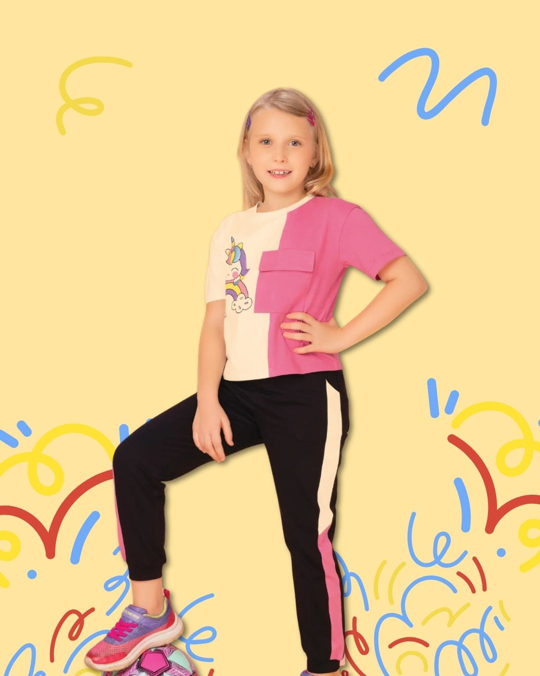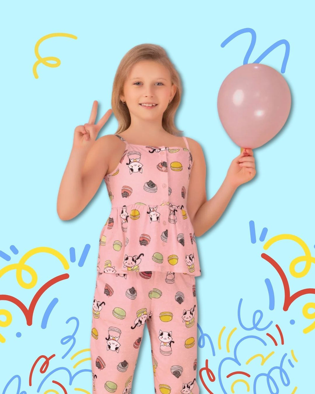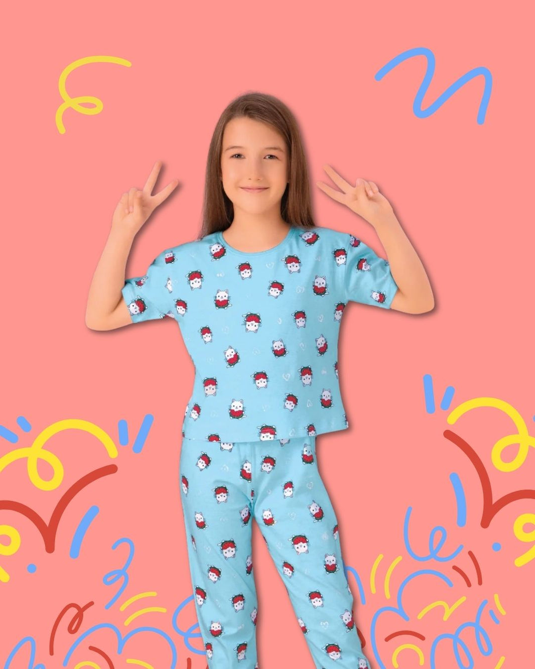 Pink Bun and Kitty Collar And Pajama Set for Girls