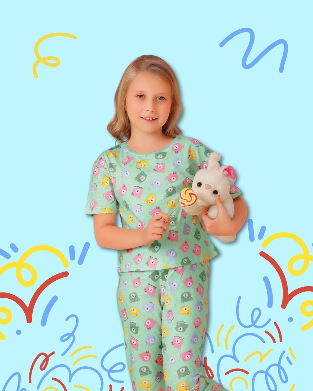 3 Piece Nightsuits Top Pajama Shorts Sets For Girls