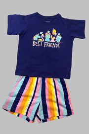 Navy Blue Striped Shorts Set For Girls - Navy blue / 3-4 Years