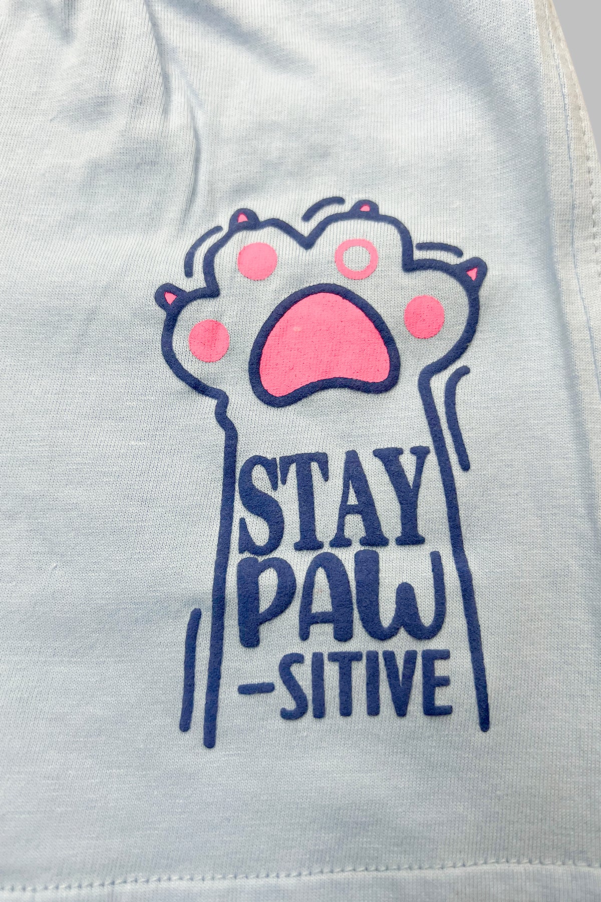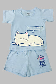 Lazy Kitty Shorts Set For Girls - Blue / 3-4 Years