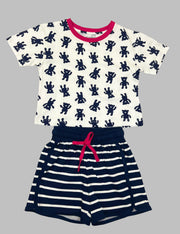 Navy Blue Striped Shorts Set For Girls - Navy blue / 3-4 Years