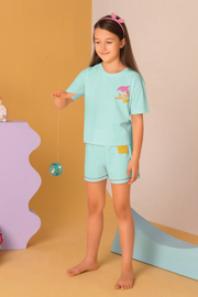 Cute Dolphin Shorts Set For Girls - Light Blue / 3-4 Years
